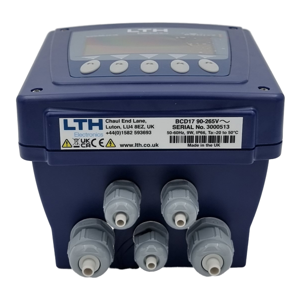 - Two configurable relay outputs (5 A @ 250 V AC) for alarms, dosing, or drain control.